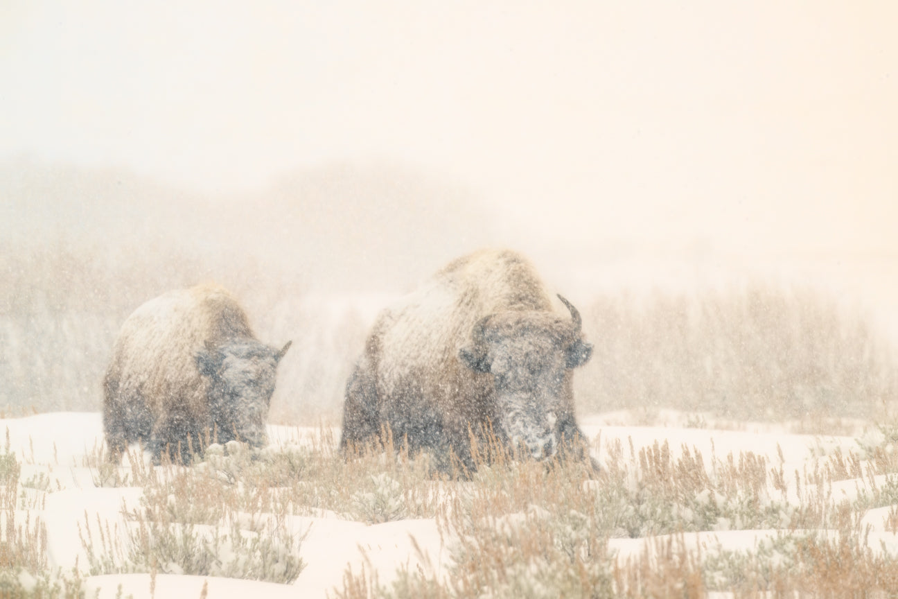 Wyoming, Yellowstone NP., Bison, B. bison, Snow,