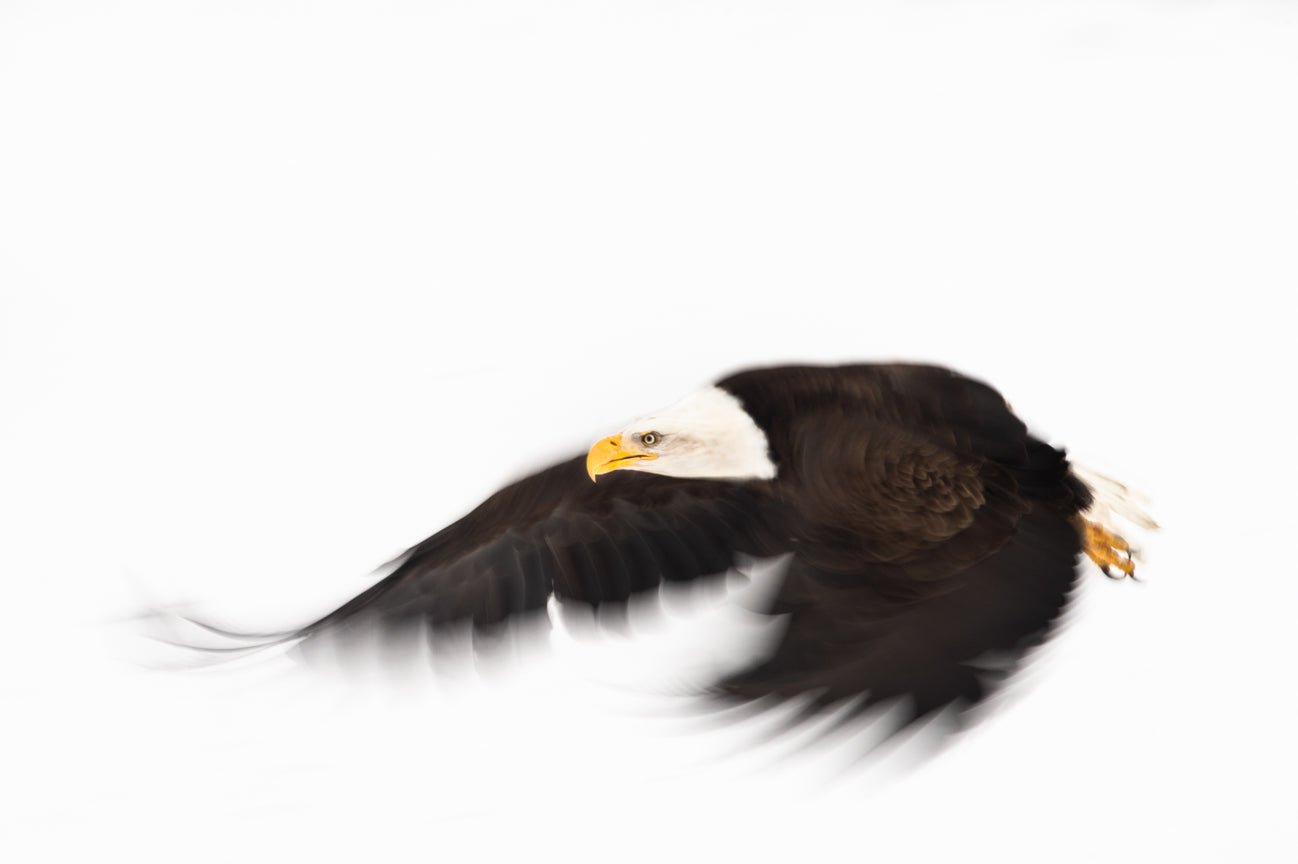 Alaska, Haines, Chilkat River, Bald eagle, Haliaeetus leucocephalus, Flying, Motion Blur,